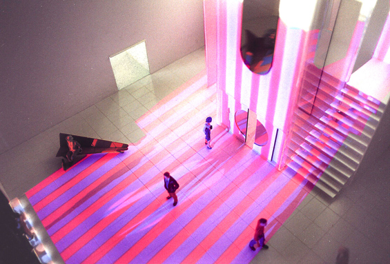 Die Kanten der Farbstreifen sind übrigens verschwommen, wenn sich die Glasfassade auf der Nordseite befindet.